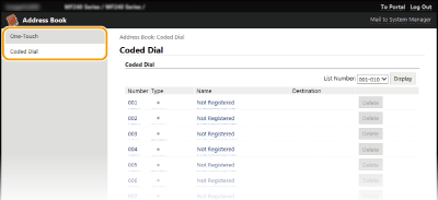 You can delete a registered item by clicking the corresponding [Delete] button.