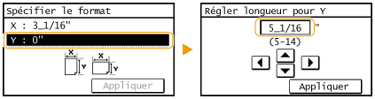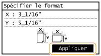 2 | Spécifiez la longueur de la dimension <Y> (la plus longue). Appuyez sur <Y>. Saisissez la longueur de la dimension <Y> et appuyez sur <Appliquer>. ![]() |