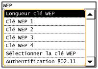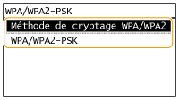 Affichage des informations WEP et WPA/WPA2-PSK1 | Appuyez sur <Réglages de sécurité>. | ||||||||