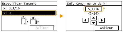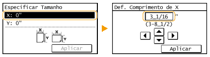 2 | Especifique o comprimento do lado <Y> (lado mais longo). Toque em <Y>. Insira o comprimento do lado <Y> e toque em <Aplicar>. ![]() |