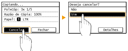 Toque em <Cancelar> no ecrã que é exibido enquanto copia
