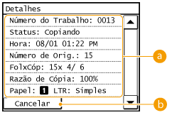 O número de cópias, configurações e outros detalhes são exibidos. Se você deseja somente verificar os detalhes sem cancelar a cópia, pressione