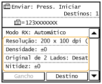 Quando <Limitar Reenvio do Log> estiver definido como <Ativado>, você não pode usar este recurso. Desativando o uso de destinos usados previamente DESLIGAR a máquina ou configurar <Limitar Novos Destinos> como <Ativado> exclui os últimos destinos e desabilita este recurso. Limitando os destinos disponíveis Destinos especificados ao enviar fax manualmente não são gravados e não aparecem em destinos anteriores. Fazendo uma chamada antes de enviar faxes (Envio manual) |