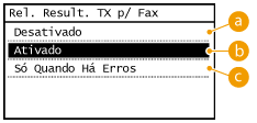 <Relatório de Resultado TX por Fax> ou <Relatório de Resultado E-mail/TX Arquivo>