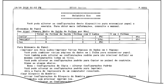É possível verificar informações como o número de impressões por mês e a quantidade de energia consumida, além de verificar maneiras de aumentar a economia.