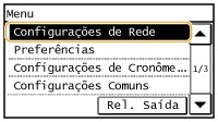 Defina o horário em que a máquina sai do modo de conexão direta automaticamente. Pode ser configurado quando <Usar Conexão Direta> estiver <Ativado>. Quando o horário definido em <Tempo até o Fim da Conexão Direta> for atingido, a comunicação entre a máquina e um dispositivo móvel é descontinuada. Antes de iniciar um grande trabalho de impressão, deve-se configurar um grande período de espera ou configurar o período de espera para <0> (Desativado).