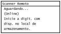 Se uma tecla não for pressionada durante um período de tempo específico depois que a tela abaixo for exibida (a máquina é configurada on-line para a digitalização), a máquina fica automaticamente offline. Especifique o período de tempo no qual a máquina se torna offline. Você também pode configurar a máquina para que ela permaneça online.