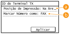 Especifica a posição para imprimir as informações de ID do terminal no fax enviado. Selecione <Na Área de Imagem> para imprimir as informações dentro da área da imagem ou <Fora da Área de Imagem> para imprimir as informações fora da área da imagem.