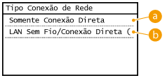 A conexão por LAN sem fio se torna indisponível. Configure quando estiver usando conexão direta apenas. <LAN Sem Fio/Conexão Direta (Alt. Autom.)>