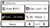 | | | | Coloque a máquina em um estado de espera por conexão. Na tela <Início>, toque em <Con. Direta>. A máquina entra no estado em que você conecta seu dispositivo móvel à máquina. |