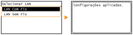 Toque em <LAN Com Fio> ou <LAN Sem Fio>.