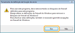 4 | Clique em [Avançar]. Se quiser visualizar o "Guia de definições de envio", clique em [Como Definir]. ![]() ![]() Se a tela abaixo aparecer Clique em [Sim]. ![]() |