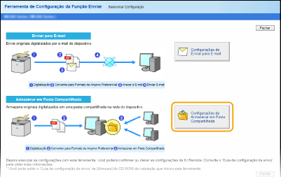Configurando o SMB (MF249dw / MF247dw)). Para configurar a máquina para configurar a máquina para salvar seus documentos digitalizados em uma pasta compartilhada na rede através do SMB, especifique a localização da pasta compartilhada de um computador com antecedência usando a Ferramenta de Configuração da Função Enviar.