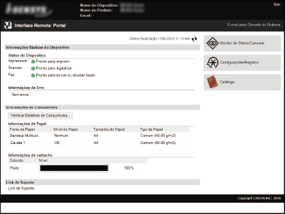 [Modo do Gerente do Sistema]Você pode executar todas as operações e configurações da Interface Remota. Se houver um PIN de Gerente do Sistema configurado, digite o PIN em [PIN do Gerente do Sistema].