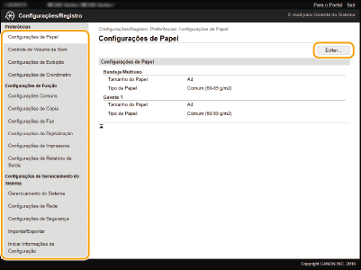 Algumas configurações exigem que você faça o login no Modo do Gerente do Sistema para que você possa alterá-las. |