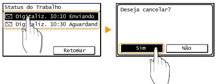 Se você deseja cancelar o envio de documentos imediatamente após pressionar