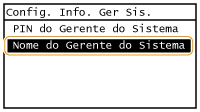 Configurando as definições através da Interface RemotaInicie a Interface Remota e faça o logon no Modo do Gerente do Sistema. Clique em [Configurações/Registro] [Gerenciamento do Sistema] [Editar] e especifique as definições necessárias na tela exibida.Usando a Interface Remota, você pode registrar diversas informações, incluindo as informações de contato, comentários do administrador, a localização da instalação da máquina, bem como as definições que você pode registrar usando o painel de operações. As informações registradas podem ser visualizadas na página [Informações do Dispositivo] da Interface Remota. Verificando as informações do administrador sistema Se você esquecer o PINNão esqueça o PIN. Se esquecer, entre em contato com seu representante autorizado Canon ou ligue para a central de ajuda Canon. Se estiver configurado um PIN Gerente Sistema