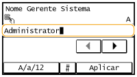 2 | Digite até 32 caracteres para o Nome do Gerenciador de Sistema, e toque em <Aplicar>. Inserindo texto ![]() |