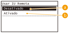 A Remote IU é útil porque as configurações da máquina podem ser especificadas usando um navegador da web em um computador. Para usar a Remote IU, a máquina precisa estar conectada a um computador em uma rede. Se você não precisar usar a Remote IU, você pode querer desabilitar a Remote IU para reduzir o risco de ter a sua máquina controlada remotamente, pela rede, por terceiros mal intencionados.