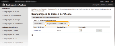 Clique [Registrar Chave e Certificado] ou [Registrar Certificado CA].