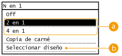 ![]() | Puede copiar dos o cuatro documentos en una única hoja con un tamaño menor. De este modo se reducirá el número de páginas, lo que le permitirá ahorrar papel. |
