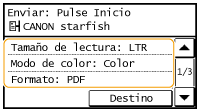 Para guardar documentos directamente en una carpeta compartida, deberá realizar los preparativos de antemano, incluida la especificación del destino para guardar. Configuración del equipo para escanear documentos y guardarlos en carpetas compartidas Los destinos disponibles para las carpetas compartidas se limitan a los destinos que haya guardados en la libreta de direcciones. Para especificar un destino utilizando la libreta de direcciones, es necesario guardar el destino para carpetas compartidas de antemano. Configuración de una carpeta compartida como ubicación de almacenamiento Registro de la libreta de direcciones desde la IU remota Hay que especificar los destinos uno por uno. |