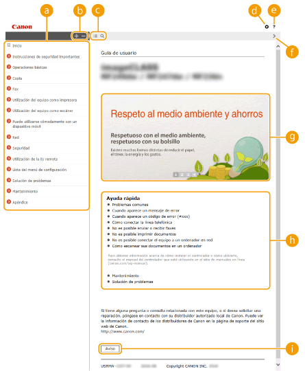 Haga clic para visualizar información sobre cómo ver la Guía de usuario, cómo realizar una búsqueda y otra información.