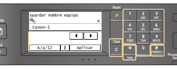 o <#> cuando el tipo de texto introducido sea <A> o <a> para visualizar símbolos introducibles en la pantalla. Pulse los símbolos que desee introducir. |