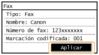 Introduzca el destino utilizando las teclas numéricas y pulse <Aplicar>.