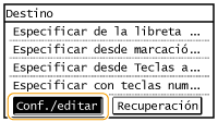 La libreta de direcciones le permite especificar un destino seleccionándolo en la lista de destinos registrados o buscándolo por nombre en el caso de los destinos con nombres de destinatario.