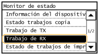 El equipo reenvía el documento seleccionado entre todos los documentos recibidos en la memoria. Para poder utilizar esta función, en primer lugar active la función Recepción en Memoria. Almacenamiento de los faxes recibidos en la memoria (Recepción en Memoria)