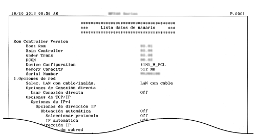 Lista del menú de configuración) y el contenido registrado en el equipo imprimiendo una Lista datos de usuario. Esta lista incluye el tamaño y el tipo de papel registrados en el equipo, las opciones de impresión de <Informe con resultado de TX>, <Informe de gestión de comunicaciones> e <Informe con resultado de RX>.