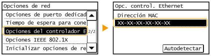 . Pulse <Información de red> <Método de conexión de red> y seleccione la opción que desee visualizar. |