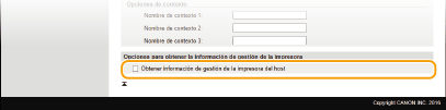 Especifique las opciones de adquisición de información de gestión de la impresora.