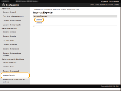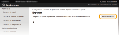 No utilice el equipo durante el proceso de exportación/importaciónAntes de exportar/importar, compruebe que no se estén realizando operaciones actualmente, como por ejemplo, la impresión de documentos.