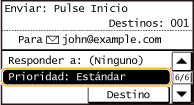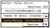Cuando especifique varios destinos, el segundo destino y siguientes deberán estar guardados en la libreta de direcciones. En el campo CC/CCO solo se puede especificar destinos que estén guardados en la libreta de direcciones. Para utilizar la libreta de direcciones, deberá completar el procedimiento de guardado previamente.