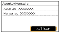 Introduzca el asunto utilizando las teclas numéricas y pulse <Aplicar>.