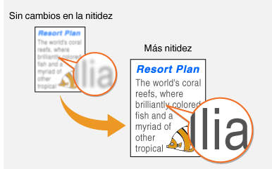 Puede ajustar la nitidez de la imagen. Aumente la nitidez para que las líneas y los textos borrosos se vean con mayor claridad o disminúyala para mejorar el aspecto de las fotos de revistas.