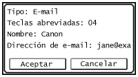 <Sí>.Si especificó Marcación por Grupo en el paso 2, aparecerá "destino(s)". Si pulsa <Número de destinos> se mostrarán los destinos registrados en el grupo.