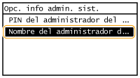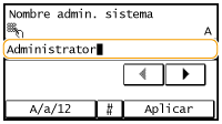 Introduzca hasta 32 caracteres para el nombre del administrador del sistema, y pulse <Aplicar>. Introducción de texto