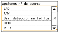 Los puertos sirven como extremos para establecer la comunicación con otros dispositivos. Normalmente, los números de puerto convencionales se utilizan para los principales protocolos, pero los dispositivos que utilizan estos números de puerto son vulnerables a ataques debido a que estos números de puerto son muy conocidos. Para mejorar la seguridad, el administrador de red puede cambiar los números de puerto. Cuando se modifica un número de puerto, el nuevo número debe compartirse con los dispositivos de comunicación, como es el caso de los ordenadores y los servidores. Especifique las opciones del número de puerto en función de su entorno de red.