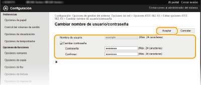 Introduzca hasta 24 caracteres alfanuméricos en el nombre de usuario. [Cambiar contraseña]