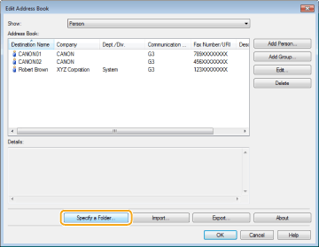 The location to save Address Book data can be changed to any arbitrary folder. You cannot use the Address Book if you do not have permission to access the folder where the Address Book is saved. In this case, change the save location of the Address Book.
