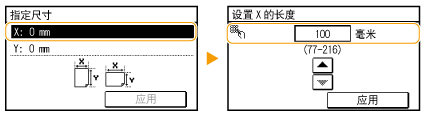 或数字键输入 <X> 侧的长度,然后轻触 <应用>。