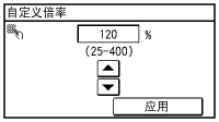 或数字键输入复印倍率,然后轻触 <应用>。可以以 1% 为增量将复印倍率设置为 25% 至 400% 之间。