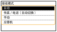<自动> ![]() | 专门接收传真 本机将自动接收传真。即使有人打电话给您,也无法跟呼叫者通话。 |