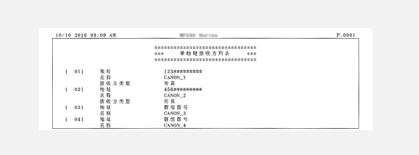 通过打印地址簿列表可查看在地址簿中注册为 <编码拨号>、<单触键> 和 <群组拨号> 的接收方的列表。