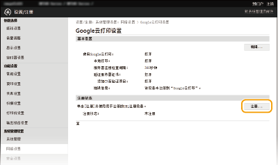 单击 [注册状态] 中的 [注册]。