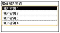 4 | 选择想要编辑的 WEP 密钥(1 至 4)。 最多可以注册四个 WEP 密钥。 ![]() |