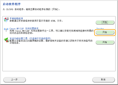 单击 [Canon MF/LBP 无线设置助手] 的 [开始]。